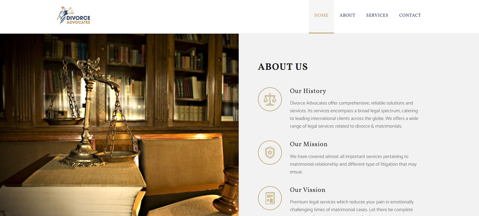 We developed a mobile-responsive profile website for Divorce Advocates, showcasing their expert legal services for divorce and matrimonial cases.