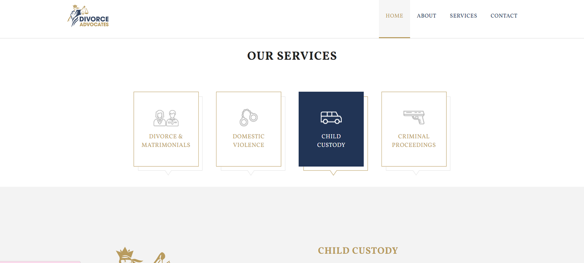 Build a user-friendly, responsive website to highlight legal services in divorce and matrimonial cases, with a clean and professional design.